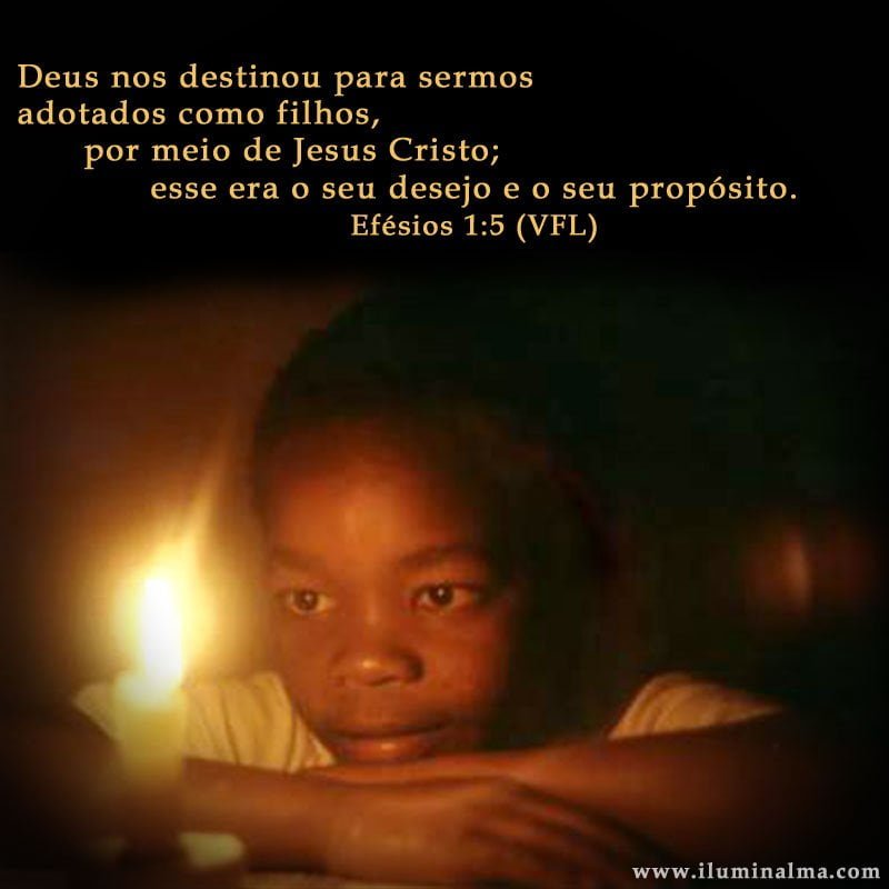Em amor nos predestinou para sermos adotados como filhos, por meio de Jesus Cristo, conforme o bom propósito da sua vontade, Efésios 1:5