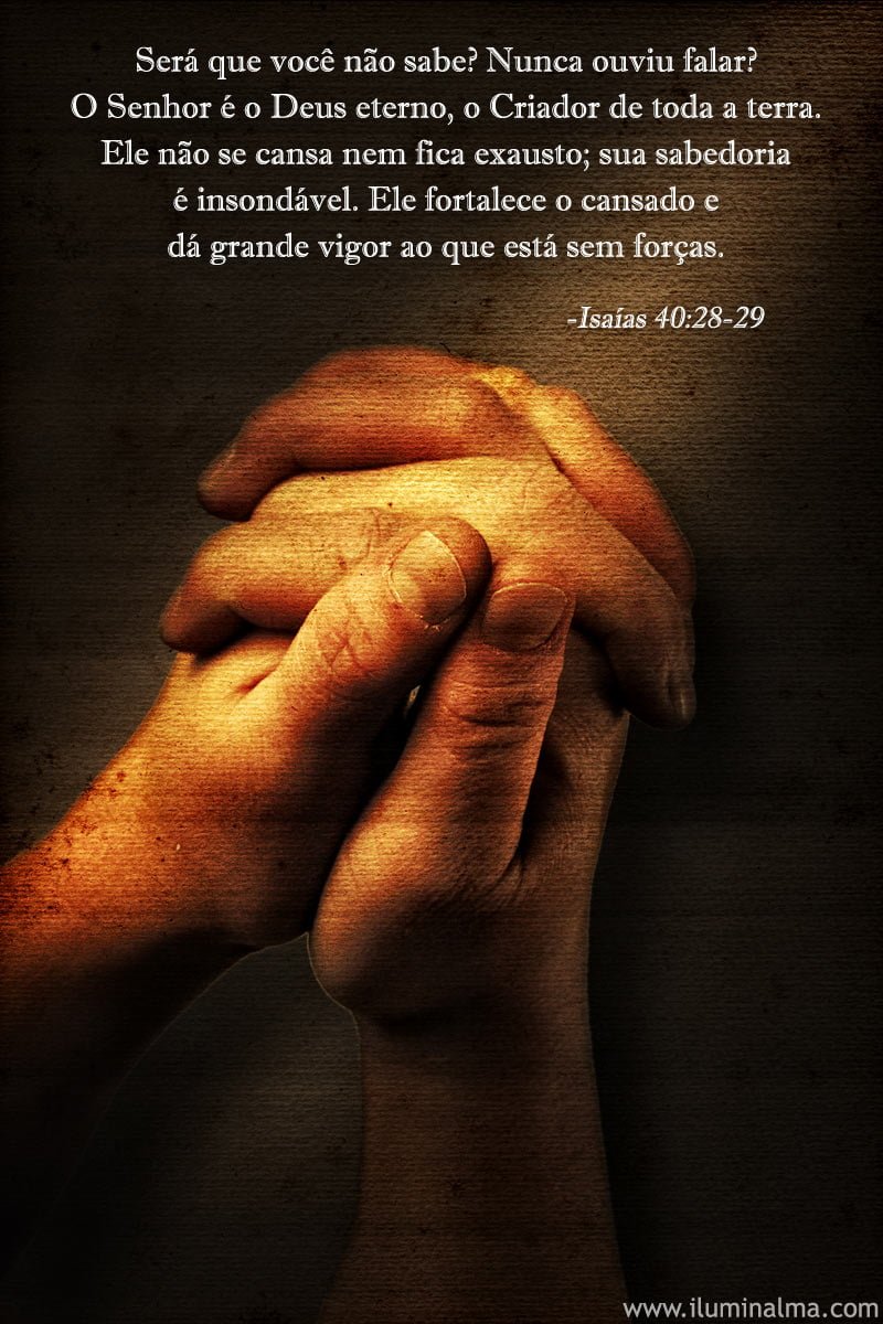 Ele não se cansa nem fica exausto; sua sabedoria é insondável.  Ele fortalece o cansado e dá grande vigor ao que está sem forças. Isaías 40:28-29